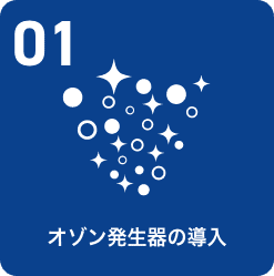 空気を自浄し、ウイルスの不活化や除菌、脱臭に強い効果を持つオゾンの発生機器を館内に設置。壁やモノに付着したウイルスや菌にも効果を発揮するので、環境の安全性が高まります。