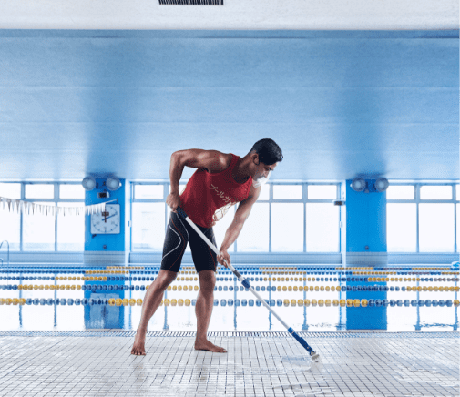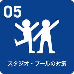 スタジオやプールで使われる専用ツールもしっかり清掃。ほかにもプログラムの間隔を空けたりお客様同士の距離を維持したり、発声や接触を禁止することでも安全を確保します。