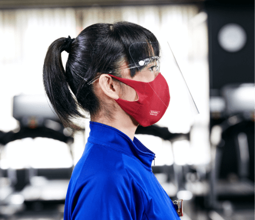 マスクを付けると取り込める酸素が少なくなり、いつもよりも心肺機能に負担がかかります。ウェイトを軽くしたり回数を減らすなどして、負荷を少し減らした運動を心がけてください。