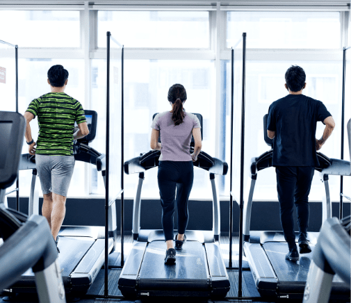 トレーニングマシンの間に飛沫防止シートやパーテーションを設置したり、ロッカーの利用時に間隔を空けていただくなどしてお客様同士の距離を維持。感染の温床となる密を防ぎます。